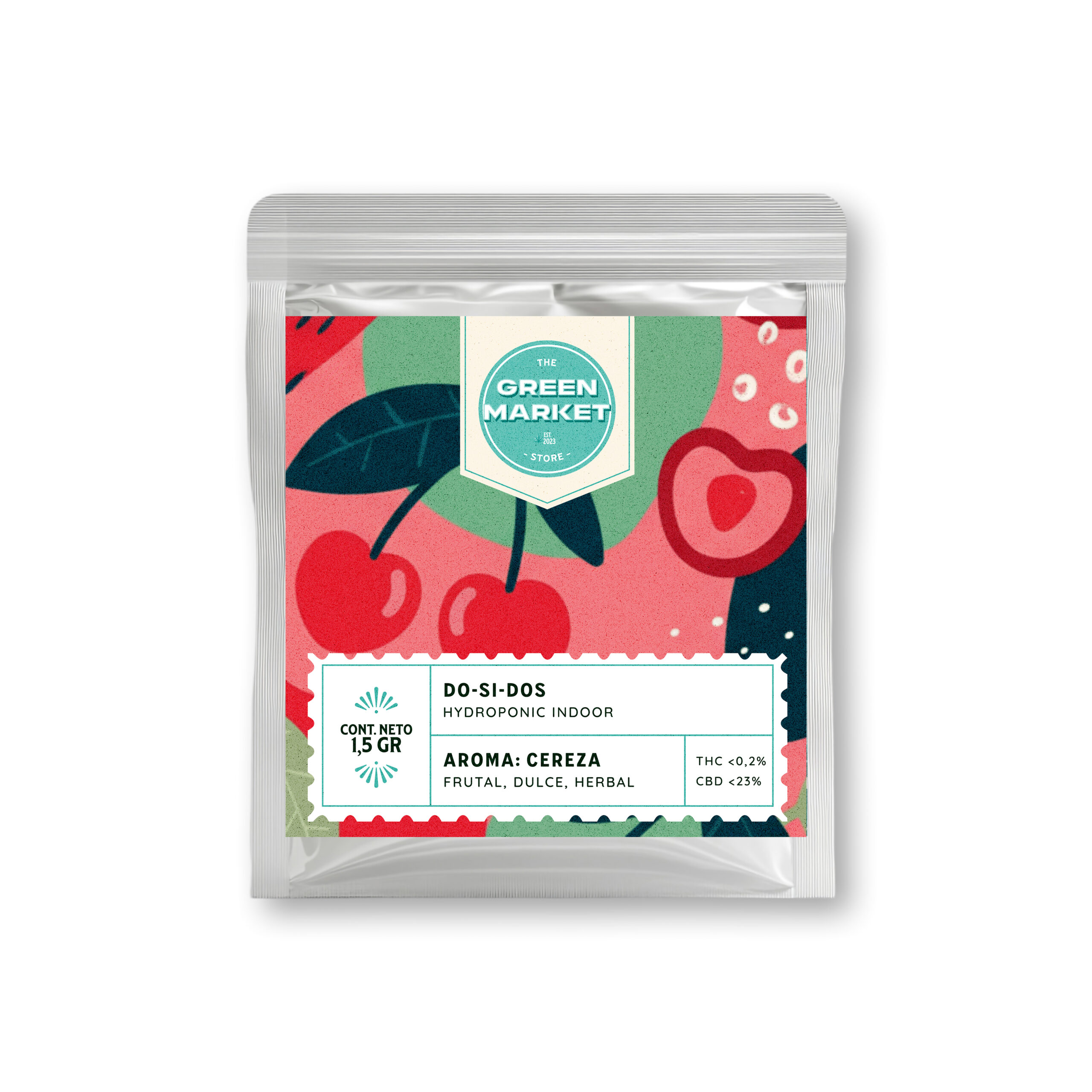 Do-Si-Dos hemp flowers are compact and medium to large in size. Its buds are a deep green with orange hues. Do-Si-Dos is distinguished by its complex and multifaceted aroma, dominated by intense notes of ripe cherries, complemented by an earthy and musky background, floral and herbal touches, and light spicy and woody undertones. The cherry notes are the most prominent component of its aromatic profile, providing a very pleasant and enticing olfactory experience.